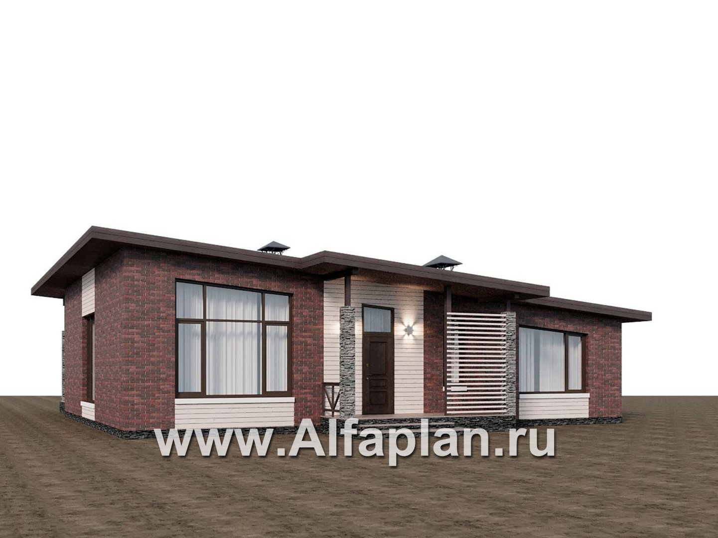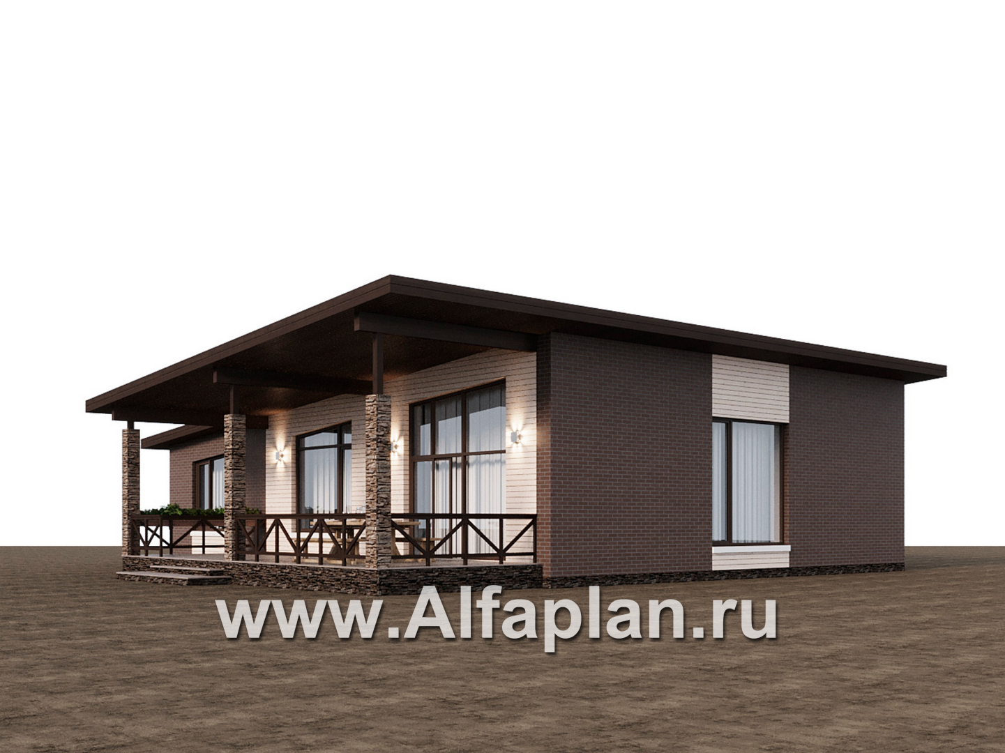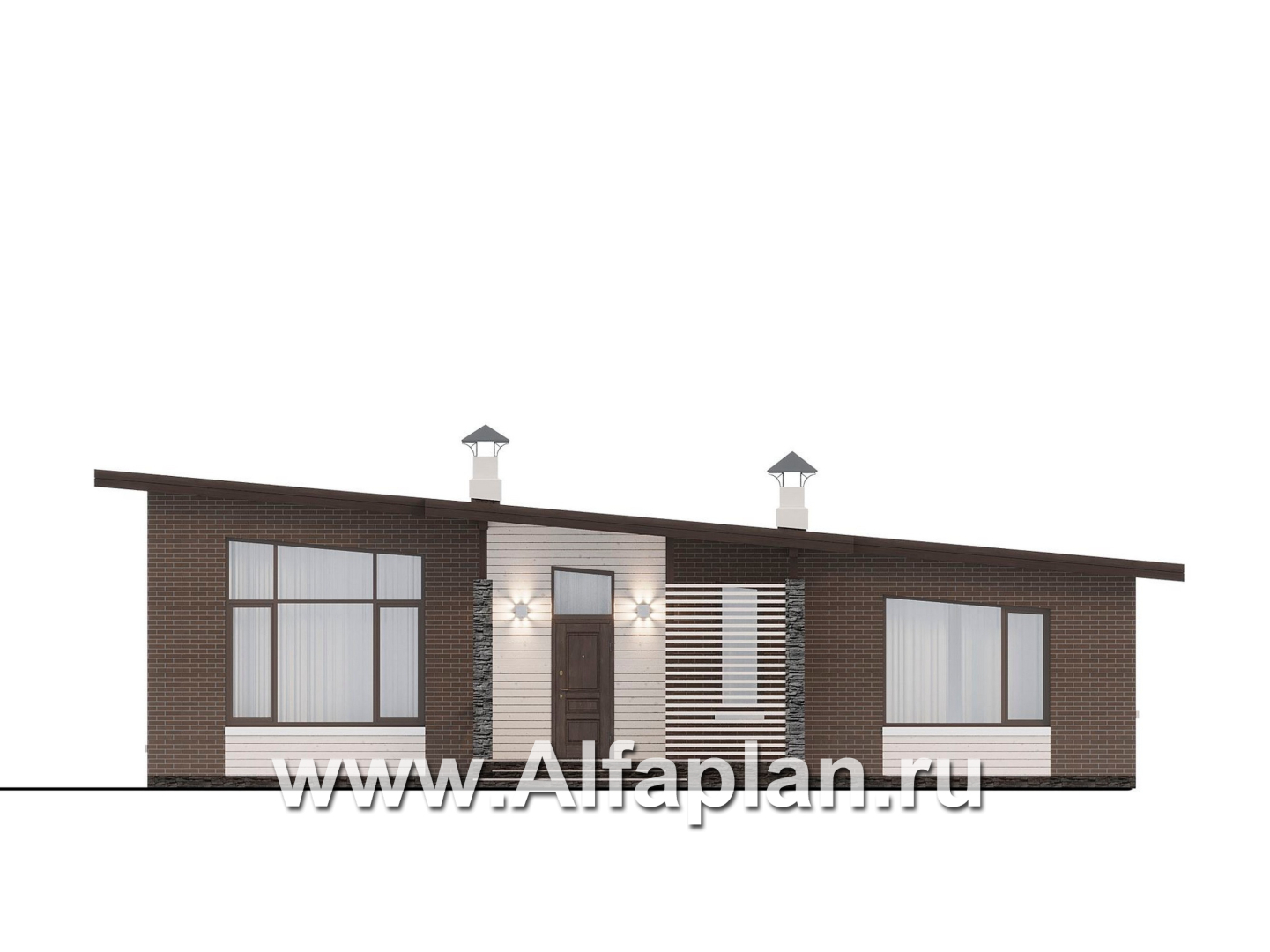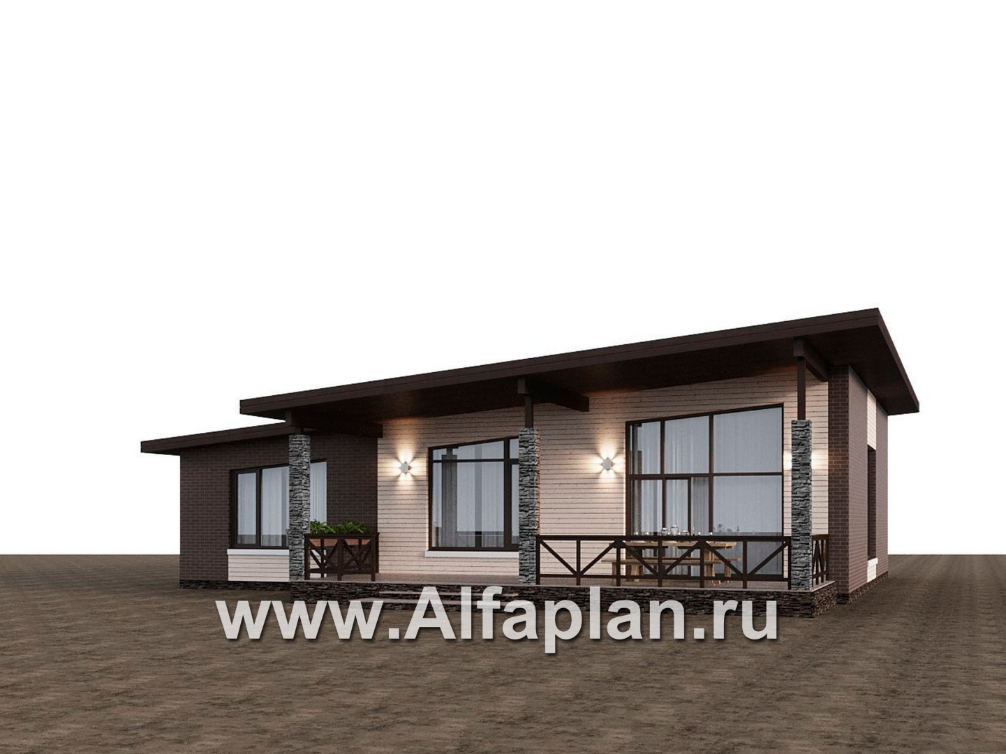«Стрелец» -проект современного одноэтажного дома с террасой со стороны входа, с односкатной крышей