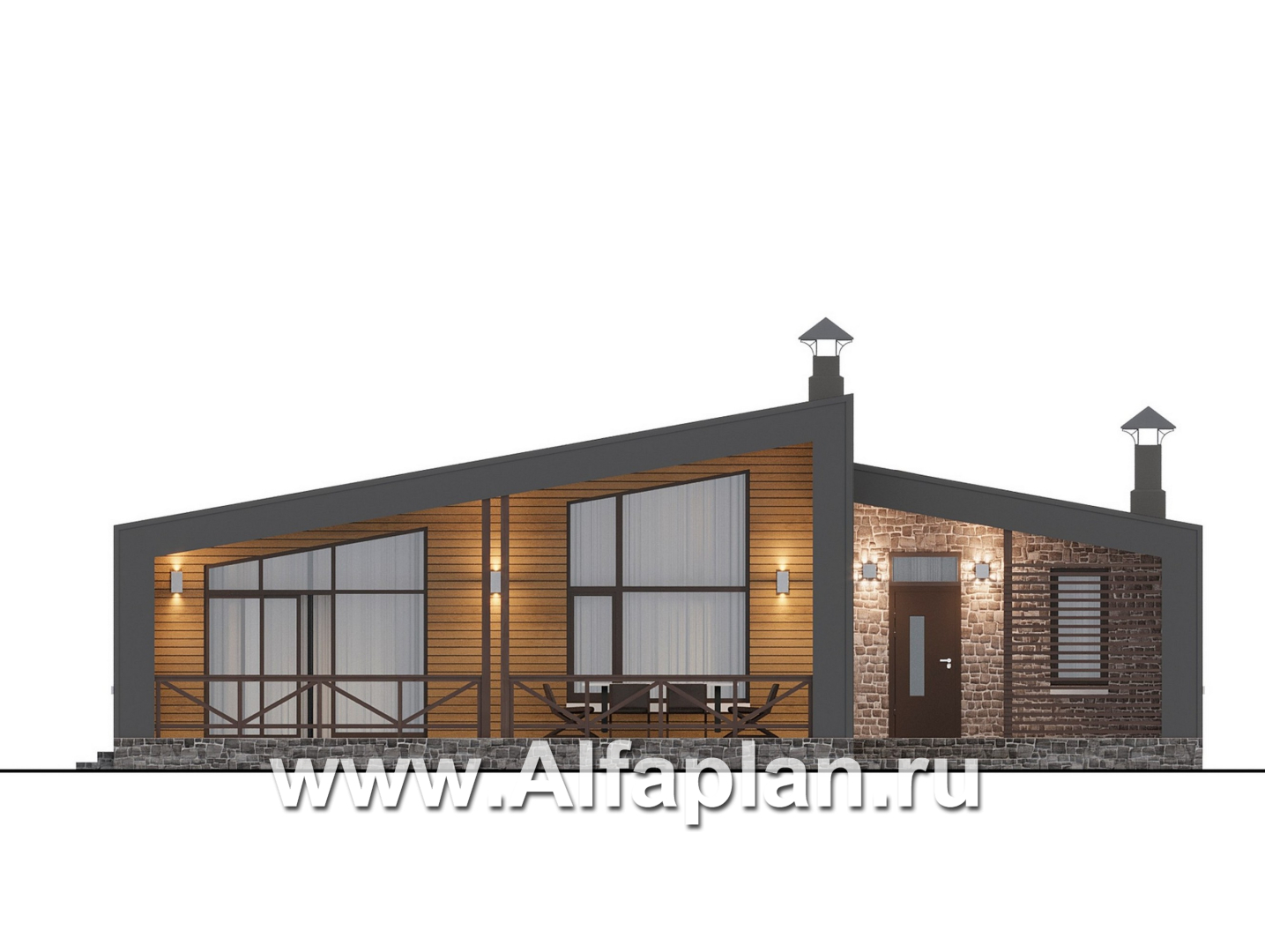 «Аметист» - проект одноэтажного дома, с террасой со стороны входа, 3 спальни, в стиле барн