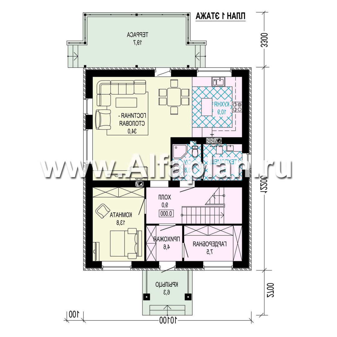 G99-S Проект двухэтажного коттеджа, планировка с гостевой на 1 эт, с террасой, в стиле минимализм