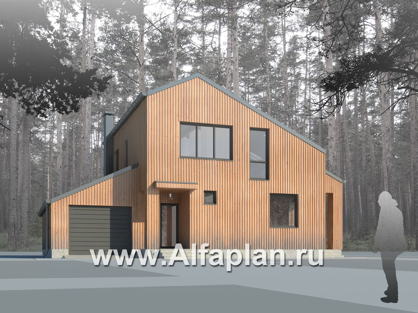 G56a-S Проект дома с мансардой, планировка с кабинетом и с гаражом на 1 авто, в современном стиле
