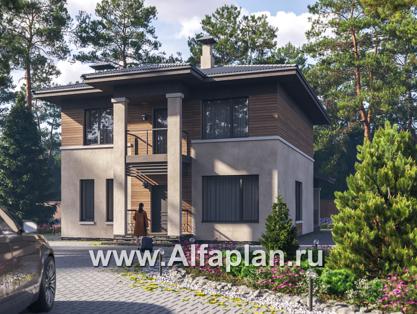 757B-S «Невада» - проект двухэтажного дома из газобетона, с террасой, в стиле Райта