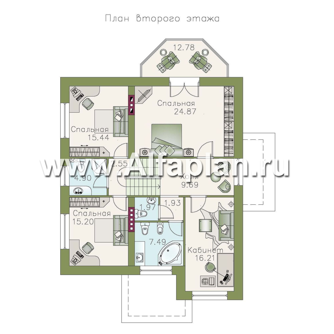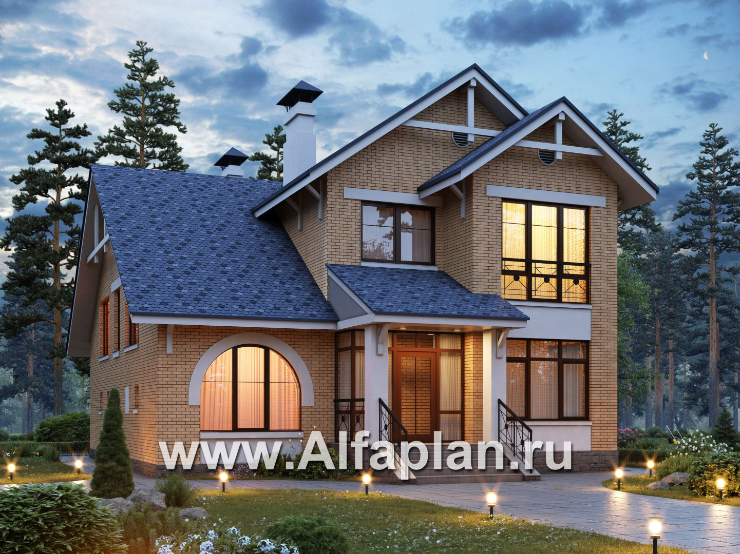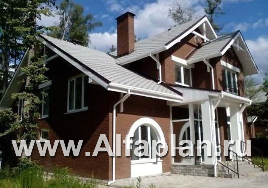 154B «Дженни Врен» - проект двухэтажного дома из кирпича с фото, планировка с эркером и сауной, в русском стиле