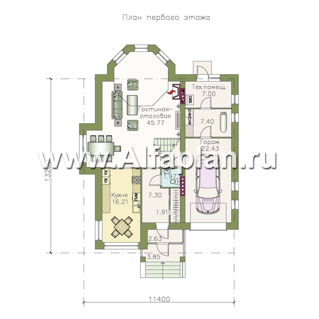 «Дженни Врен» - проект двухэтажного дома из кирпича с фото, планировка с эркером и с гаражом, в русском стиле - технические характеристики