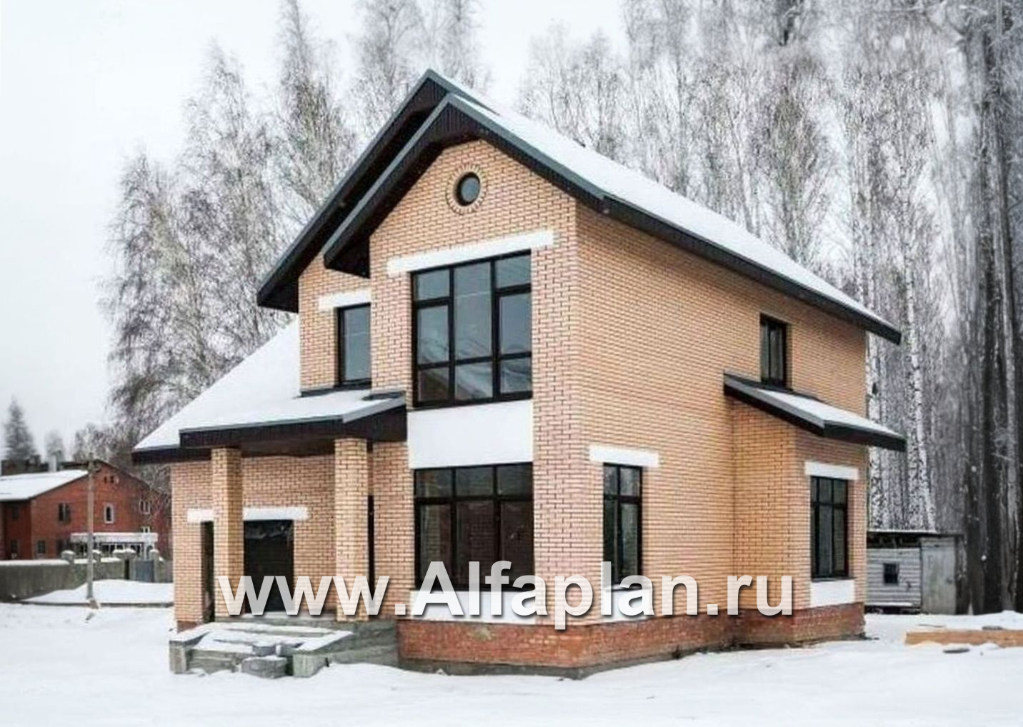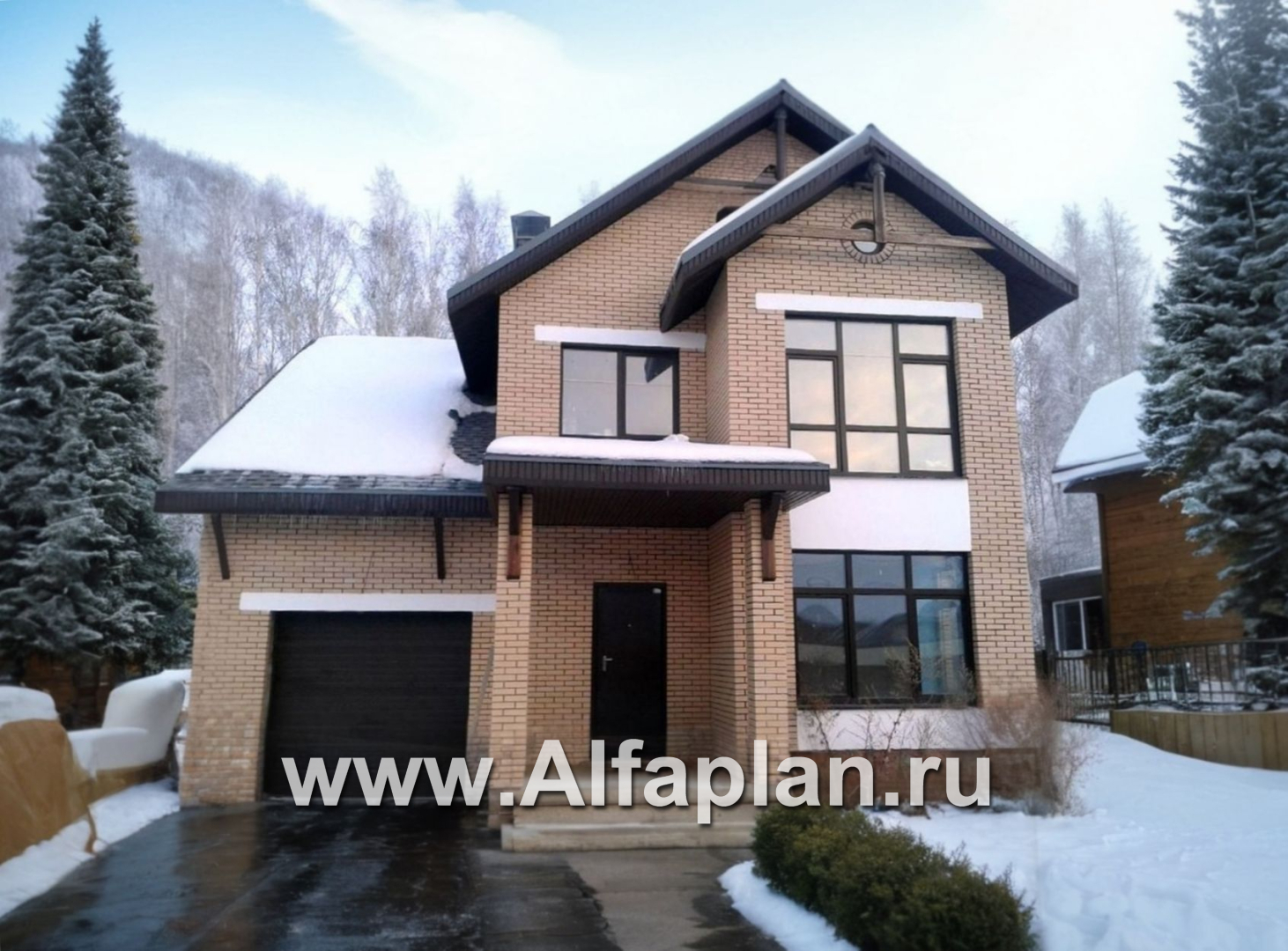 154A-S «Дженни Врен» - проект двухэтажного дома из кирпича с фото, планировка с эркером и с гаражом, в русском стиле