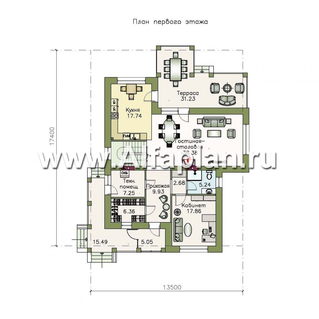 165A-S «Реноме» - проект двухэтажного дома, планировка с кабинетом на 1 эт, с большой террасой и балконом
