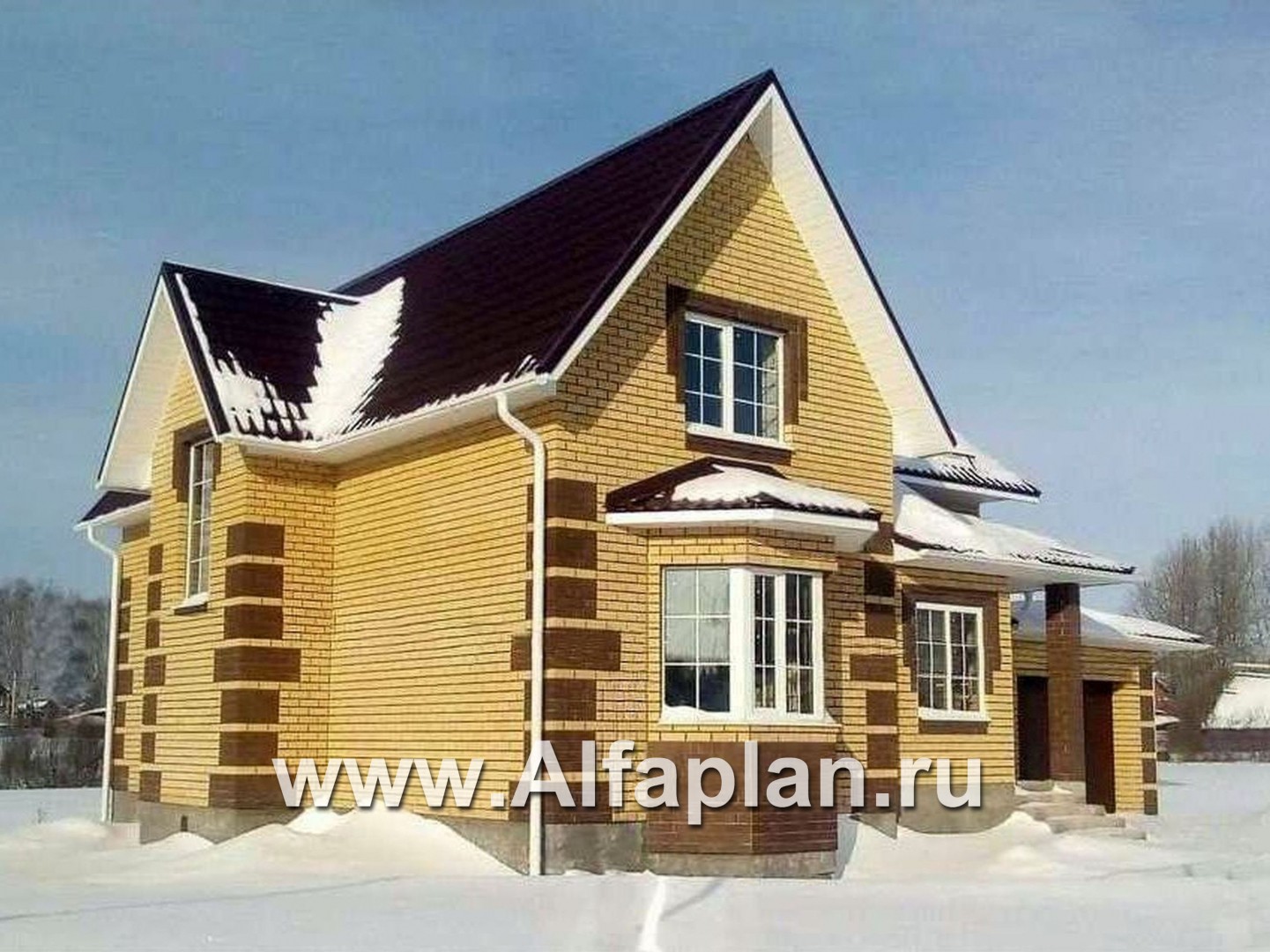 Дом двухэтажный с мансардной кровлей. Украшением дома являются эркеры на главном и садовом фасадах.