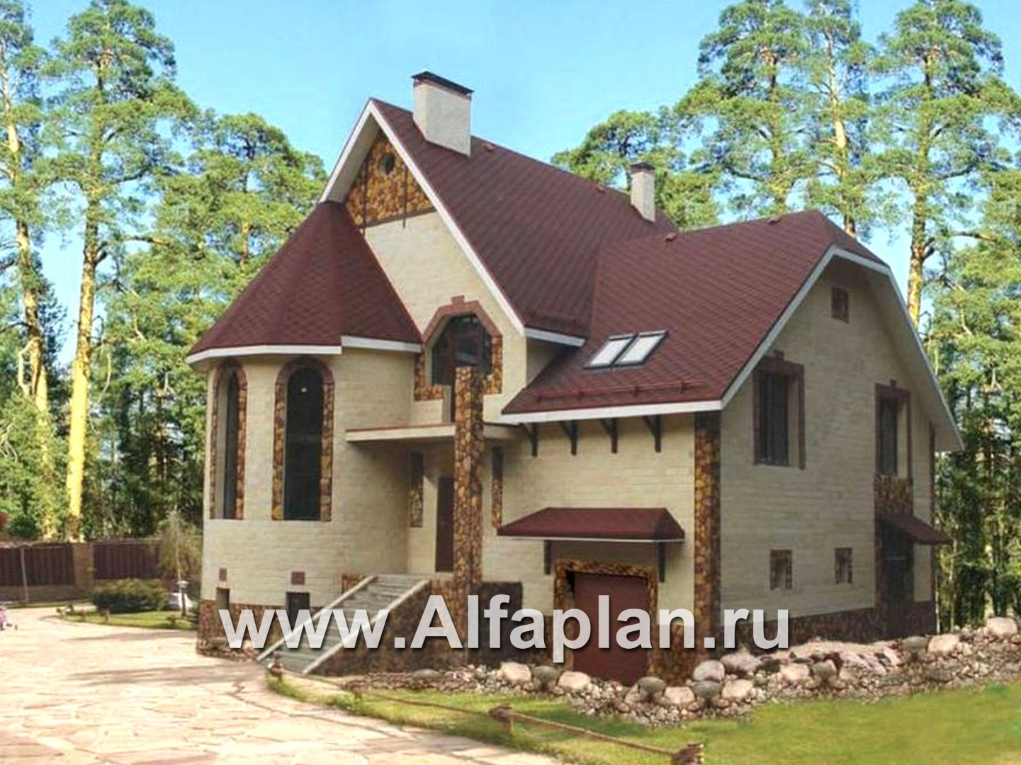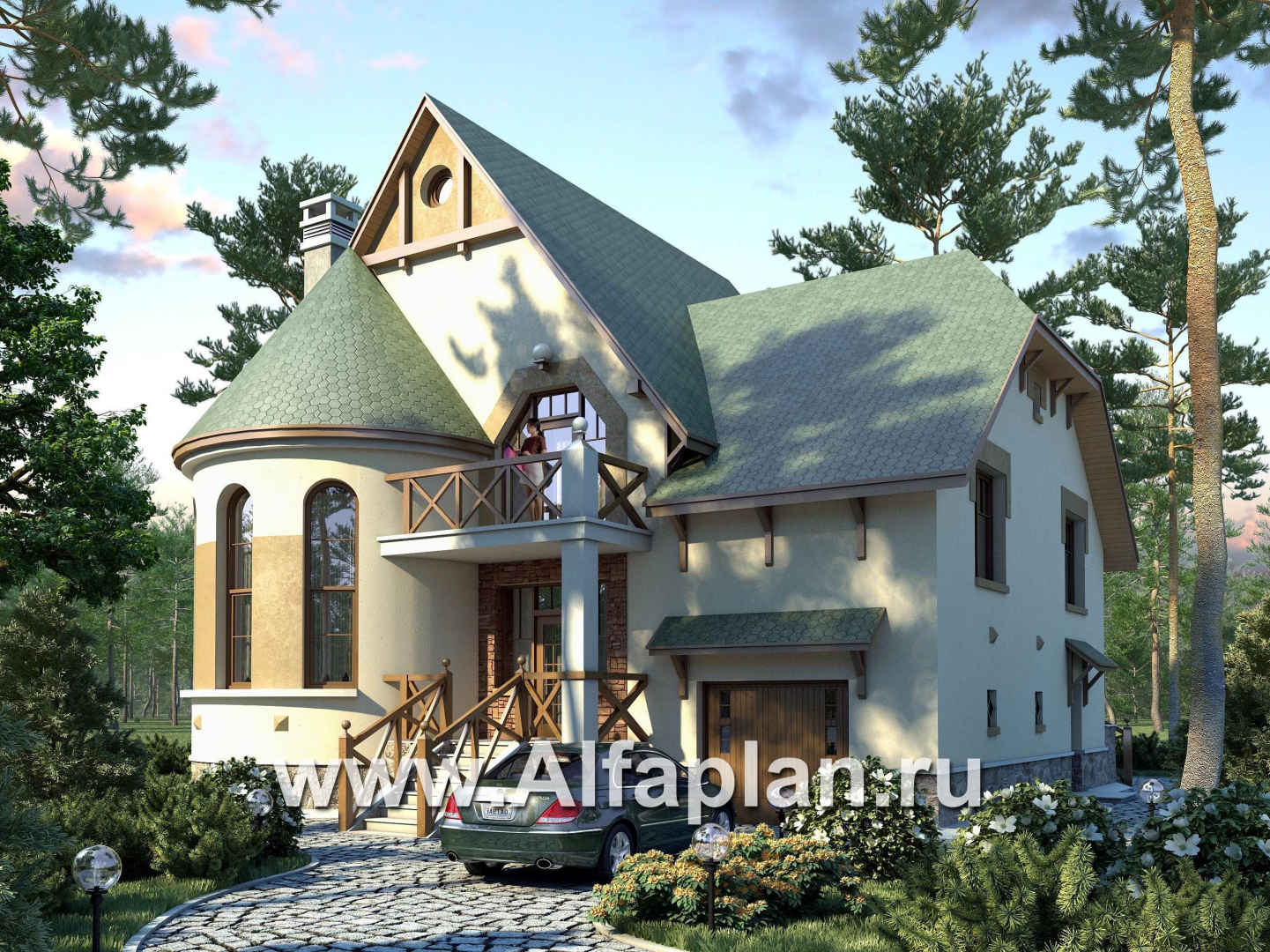 Двухэтажный дом с гаражом и верандой. Архитектура дома выполнена в романтическом характере с применением элементов стиля модерн.