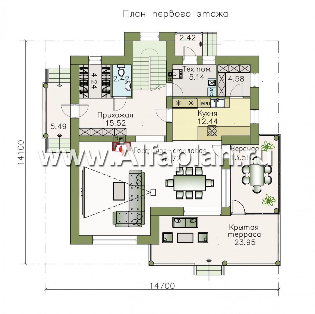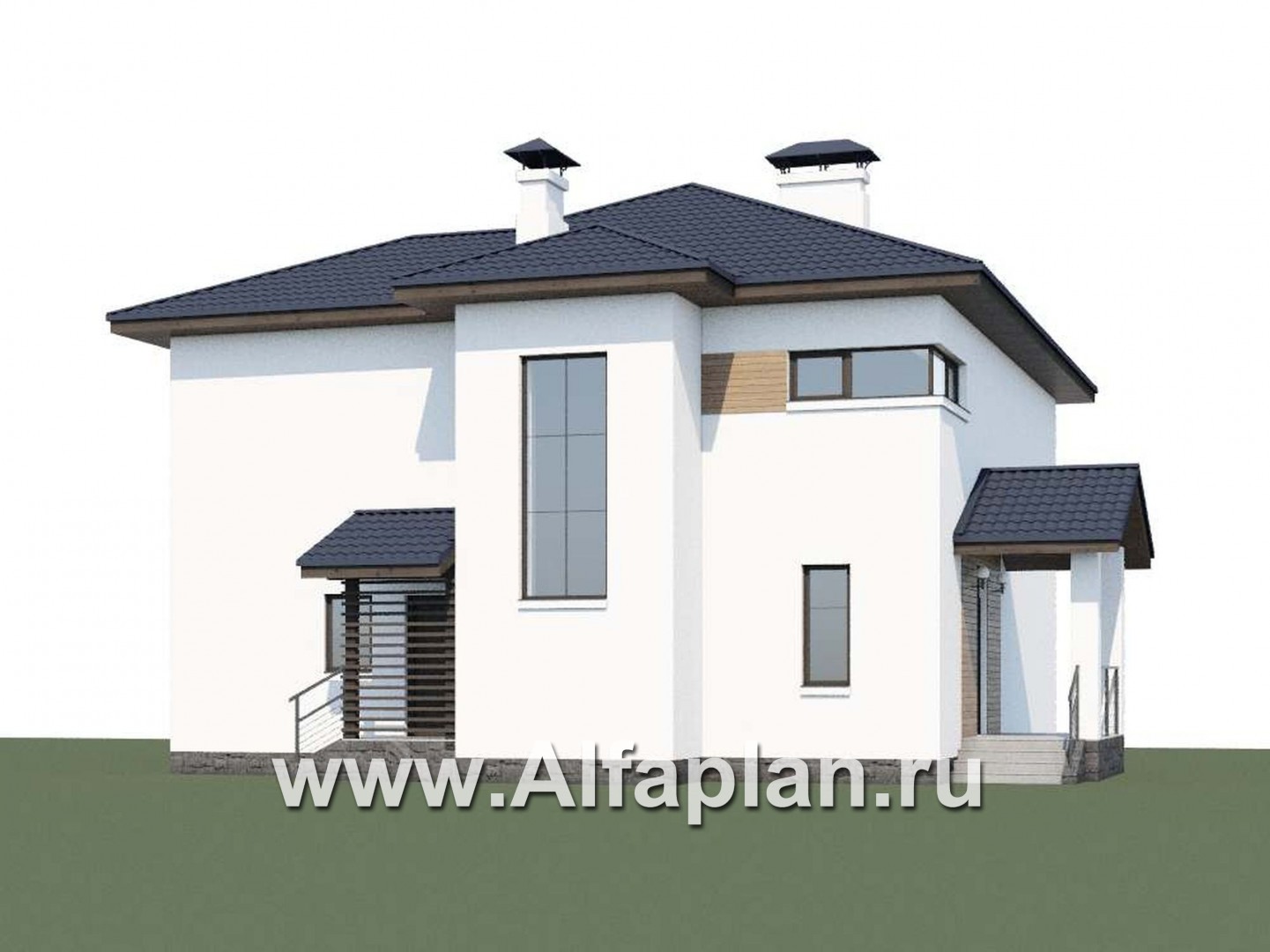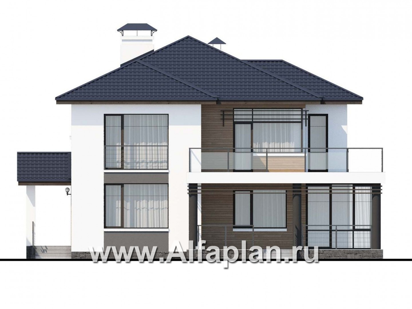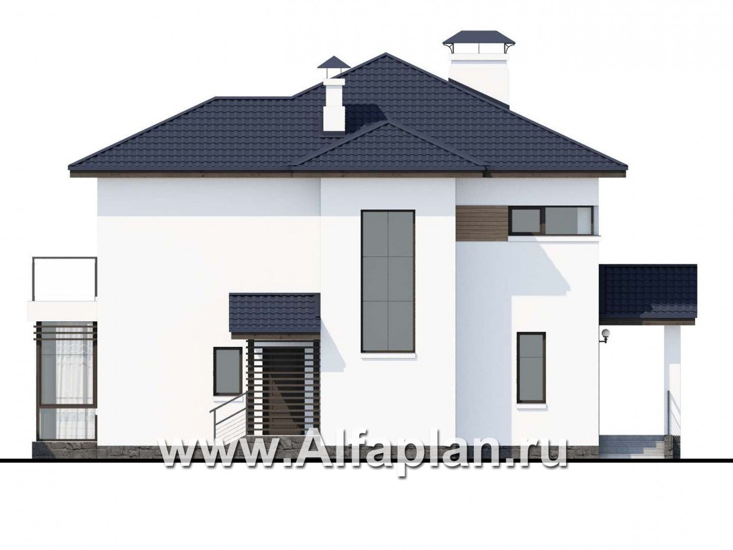 552A-S «Эффект бабочки» - проект двухэтажного дома с угловой террасой и балконом, в современном стиле
